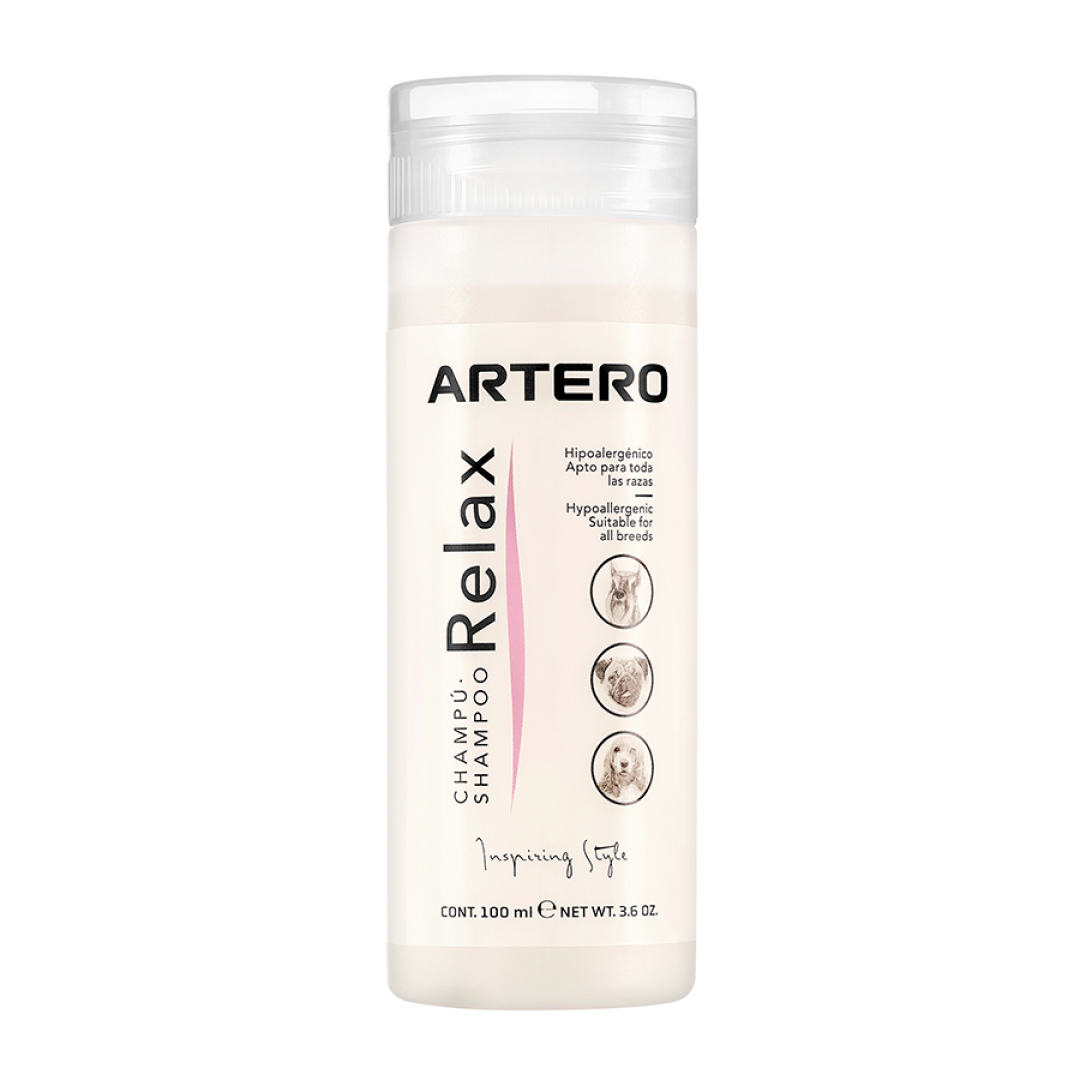 Artero Relax Shampoo er en beroligende sjampo som lindrer og pleier sår og irritert hud. Anbefales ved rød og irritert hud, kløe og eller flass, og tørr hud. Med aktive ingredienser som nyperosefrøolje og Aloe vera.